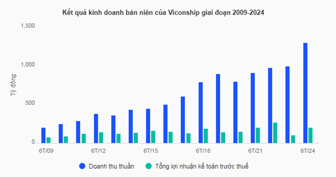 Trong quý 2/2025, doanh thu của Viconship đạt gần 813 tỷ đồng, tăng hơn 13% so với cùng kỳ, trong khi lãi trước thuế đạt gần 180 tỷ đồng, tăng 59%.
