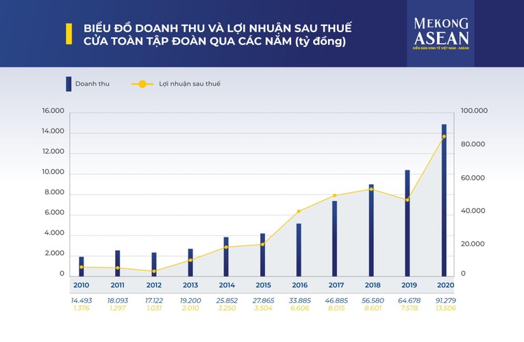 Năm ngoái, lợi nhuận sau thuế cả năm của Hòa Phát đạt 13.506 tỷ đồng, vượt 50% kế hoạch đề ra, tăng 78% so với cùng kỳ và cao gấp gần 10 lần so với năm 2010. Doanh thu đạt trên 91.000 tỷ đồng, tăng 41% so với năm 2019 và gấp 6,3 lần sau 10 năm (so với năm 2010).