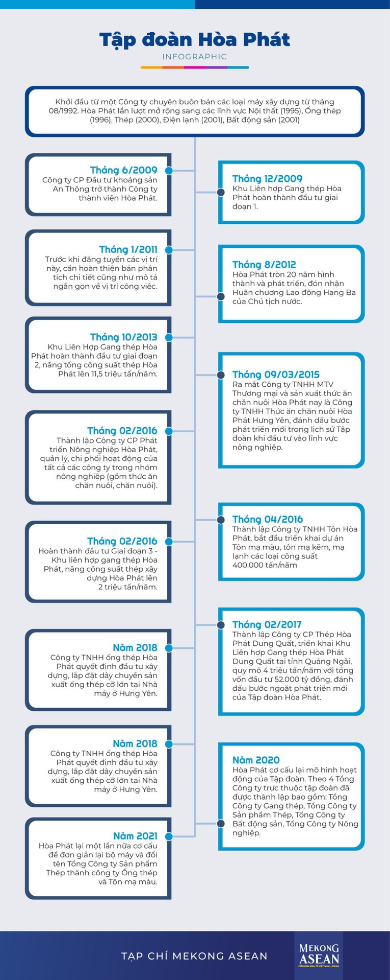 Từ nhà máy luyện phôi thép theo công nghệ lò điện 300.000 tấn/năm, đến đầu năm 2021, năng lực sản xuất thép thô của Hòa Phát đạt trên 8 triệu tấn/năm. Với công suất này, Hòa Phát đã vươn lên vị trí số 1 về sản xuất thép thô tại Đông Nam Á và tương đương với nhà sản xuất đứng thứ 48 trong Top 50 đơn vị sản xuất thép thô lớn nhất toàn cầu (theo World Steel 2020).