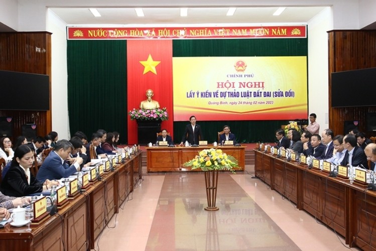 | Hội nghị lấy ý kiến về Dự thảo Luật Đất đai (sửa đổi) diễn ra tại TP Đồng Hới, tỉnh Quảng Bình sáng 24/2. Nguồn: VGP. |