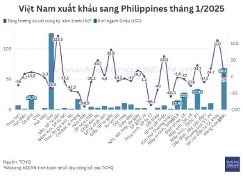 Theo số liệu từ Tổng cục Hải quan, tổng kim ngạch xuất nhập khẩu giữa Việt Nam và Malaysia đạt 988 triệu USD trong tháng 1/2025, giảm 25% so với cùng kỳ năm trước (YoY). Trong đó, xuất khẩu từ Việt Nam sang Malaysia đạt 333 triệu USD, giảm 27% YoY; nhập khẩu đạt 654 triệu USD, giảm 23% YoY.